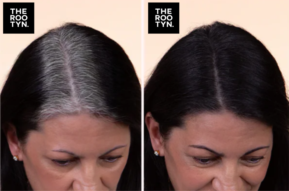 Proszek z korzenia THE ROOTYN pokrywa przerzedzone obszary i rozmywa widoczne odrosty, zapewniając naturalny efekt.